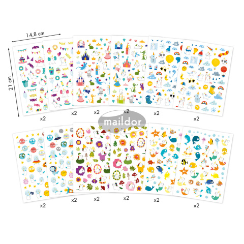 Środowe popołudnia, deszczowe wakacje, zajęcia w centrum lub w szkole, ta książeczka z naklejkami zajmie dzieci i pozwoli im puścić wodze fantazji. Kolorowe naklejki do ozdobienia rysunku, zeszytu, fresku.... Tyle możliwości, które zachwycą Twoje dzieci i pozwolą spędzić z nimi miłe rodzinne chwile.